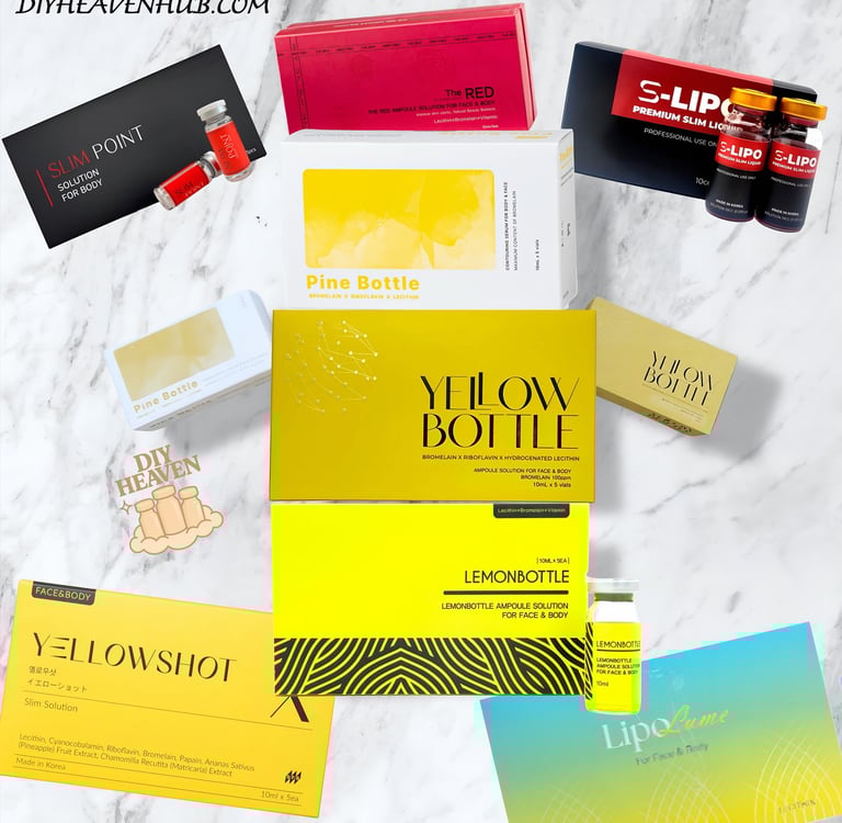 (Lemon Bottle, Lipolume, Pine Bottle, Pure Bottle, S-Lipo, Slim Point — Face & Body, The Red, Yellow Bottle, Yellow Shot)