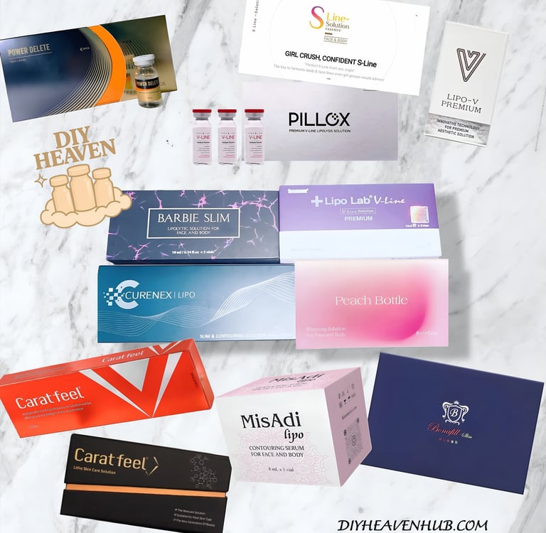 (Barbie Slim, Bonafill Slim, Caratfeel Black, Caratfeel Red, Curenex, Lipo Lab V-Line, Lipo-V Premium, Misadi Lipo, Peach Bottle, PILLOX Premium V-Line, Power Delete, S-Line Solution)