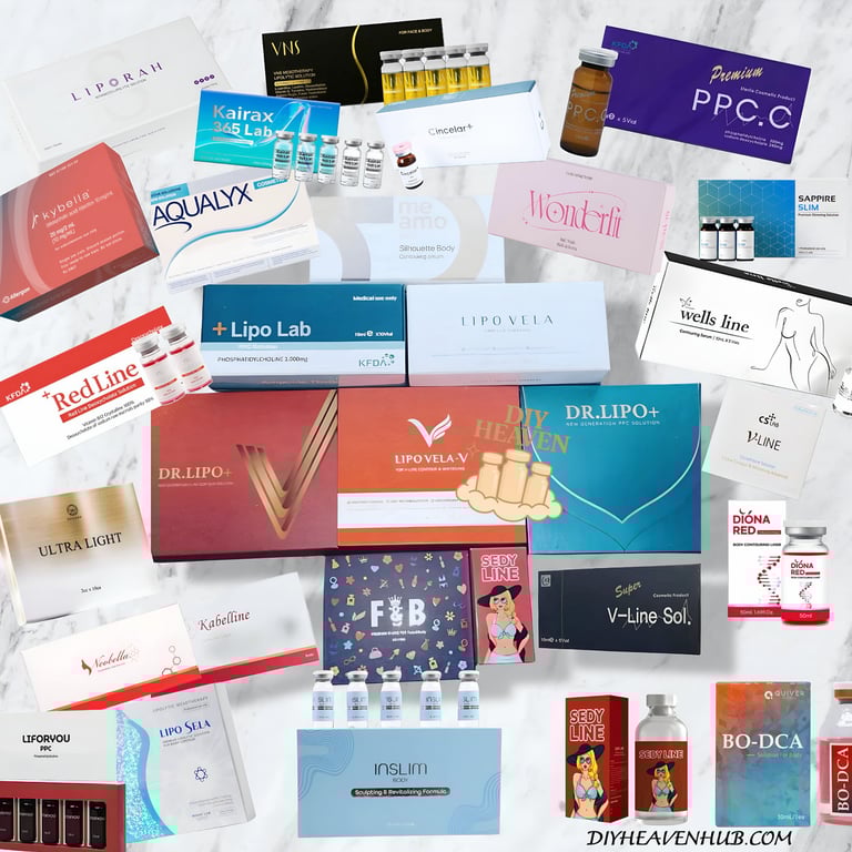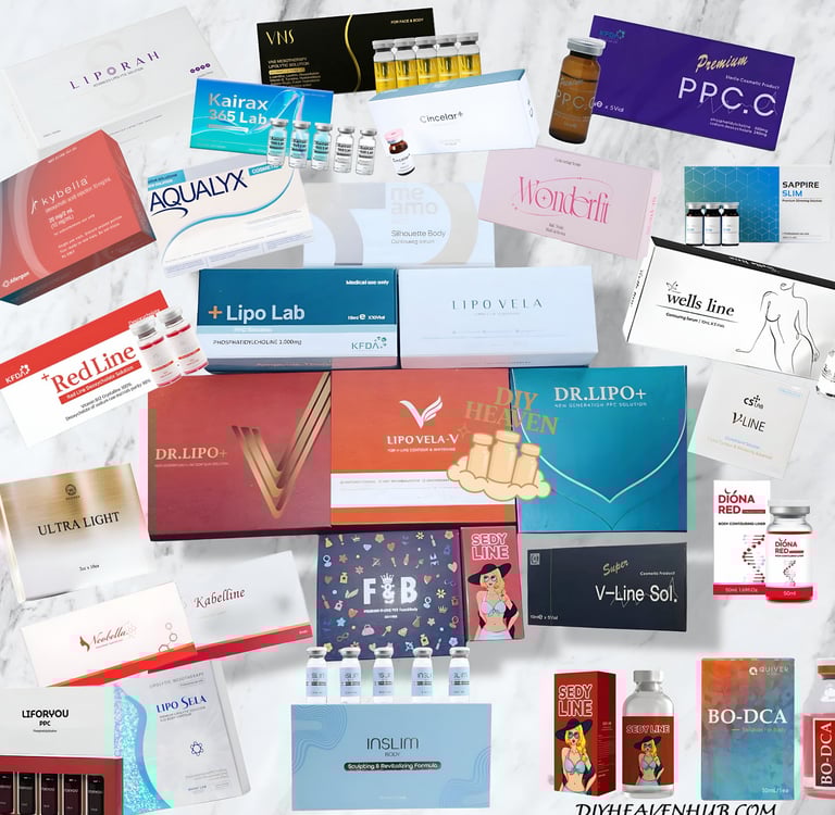 (Aqualyx, BO-DCA, Cinclear, CS Lab V Line, Diona Red, Dr. Lipo, Dr. Lipo V-Line, F&B, Inslim Solution, Kabelline, Kairax 365 Lab, Kybella, Liforyou PPC, Lipo Lab PPC, Lipo Sela, Liporah, Liporah V, Lipovela, Lipovela V-Line, Meamo Body Silhouette, Neobella, Premium PPC, Red Line, Sappire Slim, Sedy Line, Super V-Line Sol, Ultra Light, VNS, Wells Line, Wonderfit)