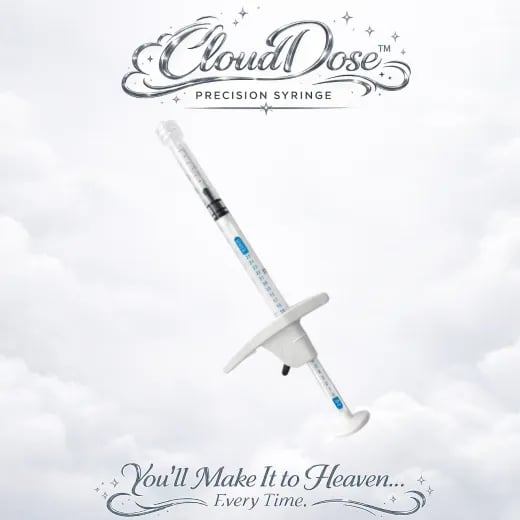 CloudDose is made from higher-end plastic compared to standard syringes, offering added durability and a more controlled feel during use.