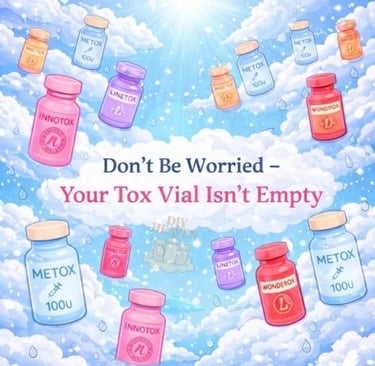 It’s completely normal for a tox vial to look empty. Most tox comes as a freeze-dried (lyophilized) powder, not liquid. The active ingredient appears almost as dust at the bottom of the vial that gets mixed with sterile saline before use. That microscopic powder still represents hundreds of units.